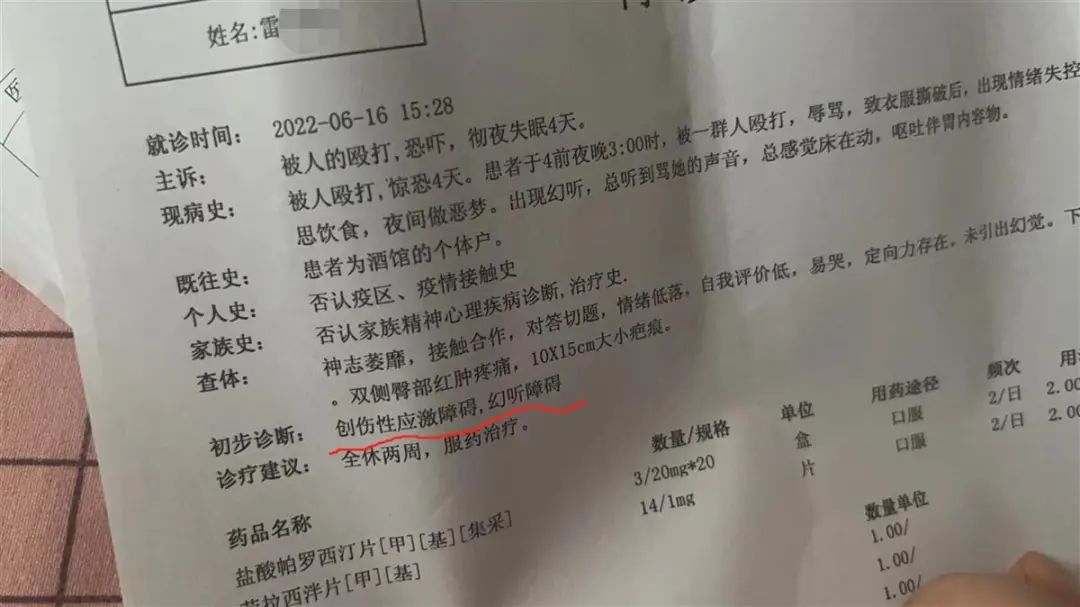 而据心理医生诊断,萱萱被初步诊断为创伤性应激障碍,幻听障碍,医生建议全休两周,服药治疗。