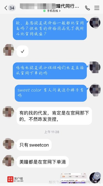 “厂家不多,官网很多,代理更多。”王女士向记者透露道,许多不同品牌的美瞳其实皆出自于相同的厂家,官网找厂家订货,“瞳代”则负责找官网下单,最后客户收到的美瞳实则大多由厂家直接邮寄。