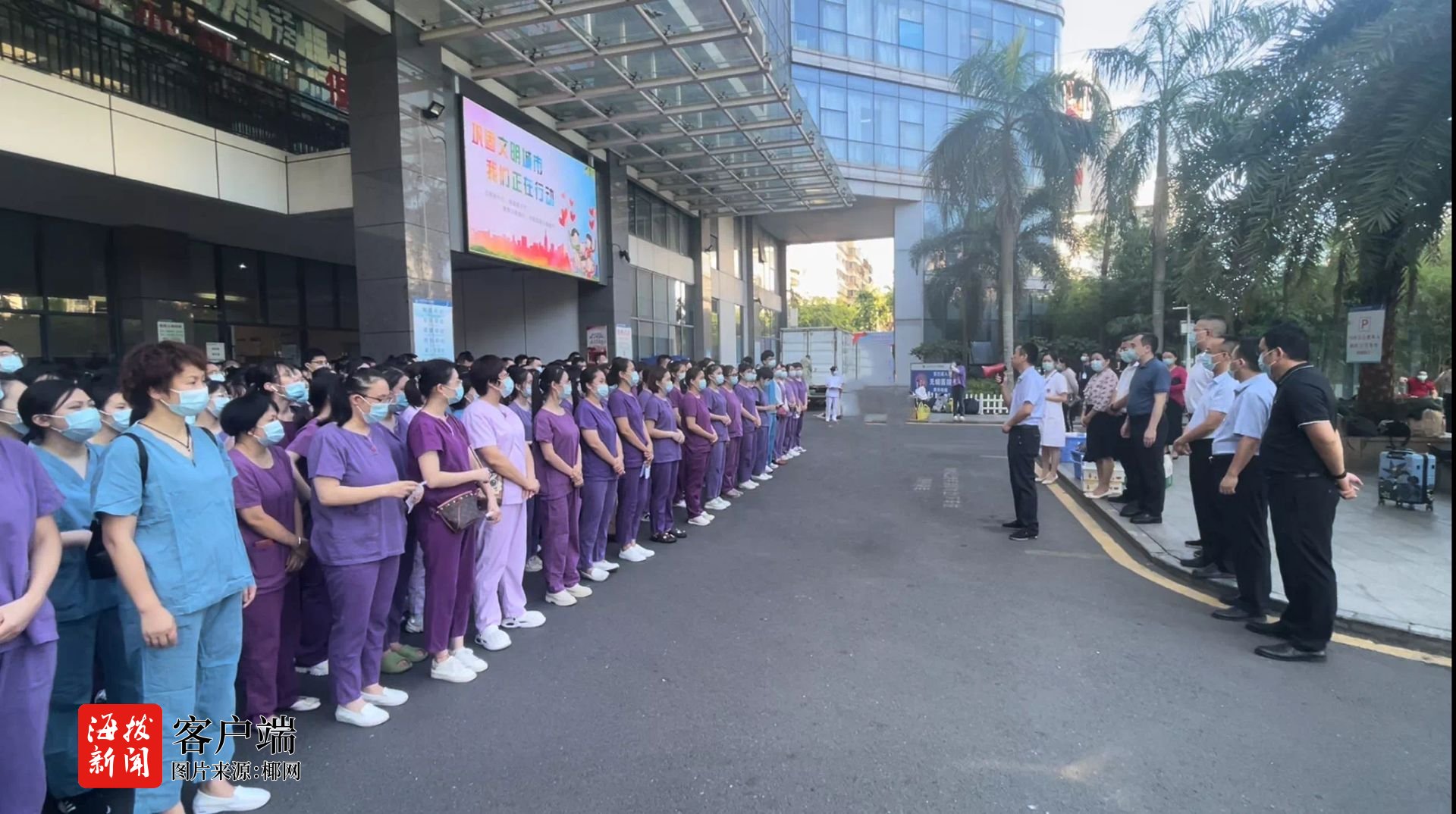 8月2日,海口市第四人民医院也紧急派出60名医护人员组建驰援三亚核酸采样队支援三亚抗疫工作。此次逆行出征的60名医护人员中,有20名医生、40名护士。“希望大家务必做好个人防护,服从当地的工作安排,保质保量完成任务,与三亚人民一起打赢这场疫情阻击战!”该院副院长符史健说。