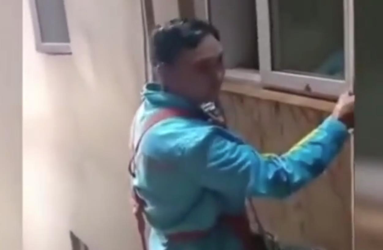 11日,网传云南保山一名工人在一小区悬挂在楼房外、维修天然气管道时,被一住户多次泼水。