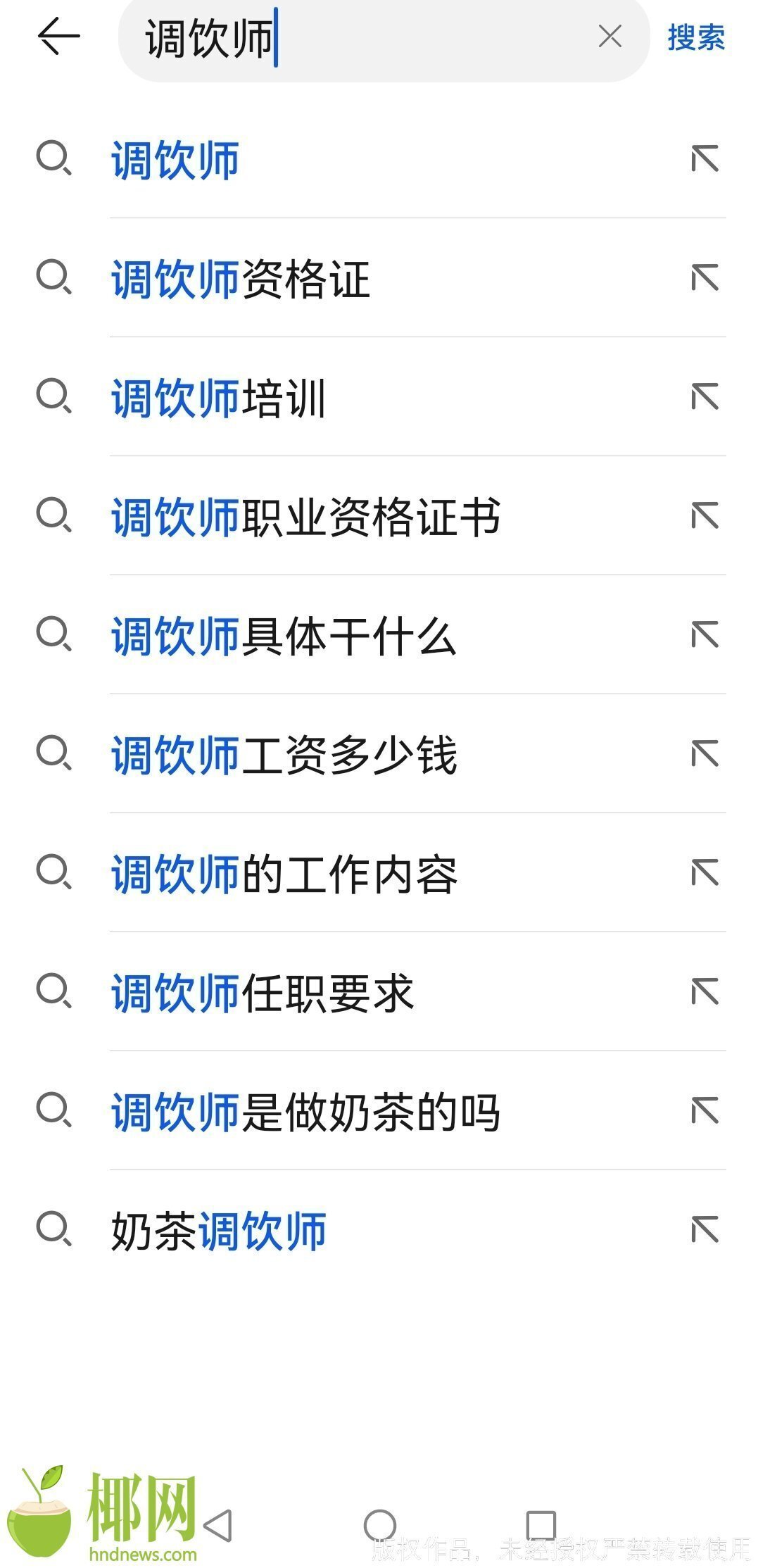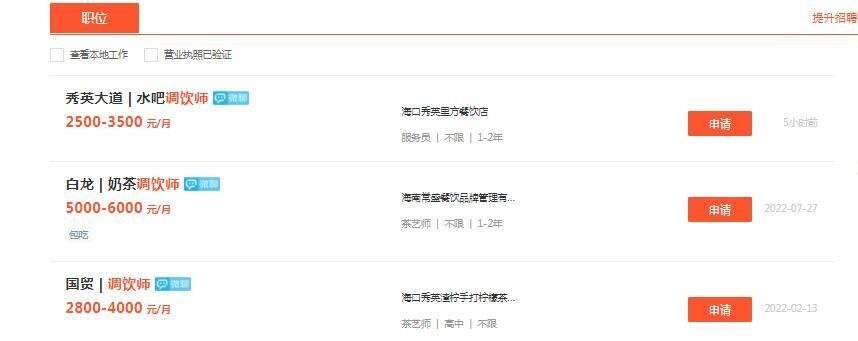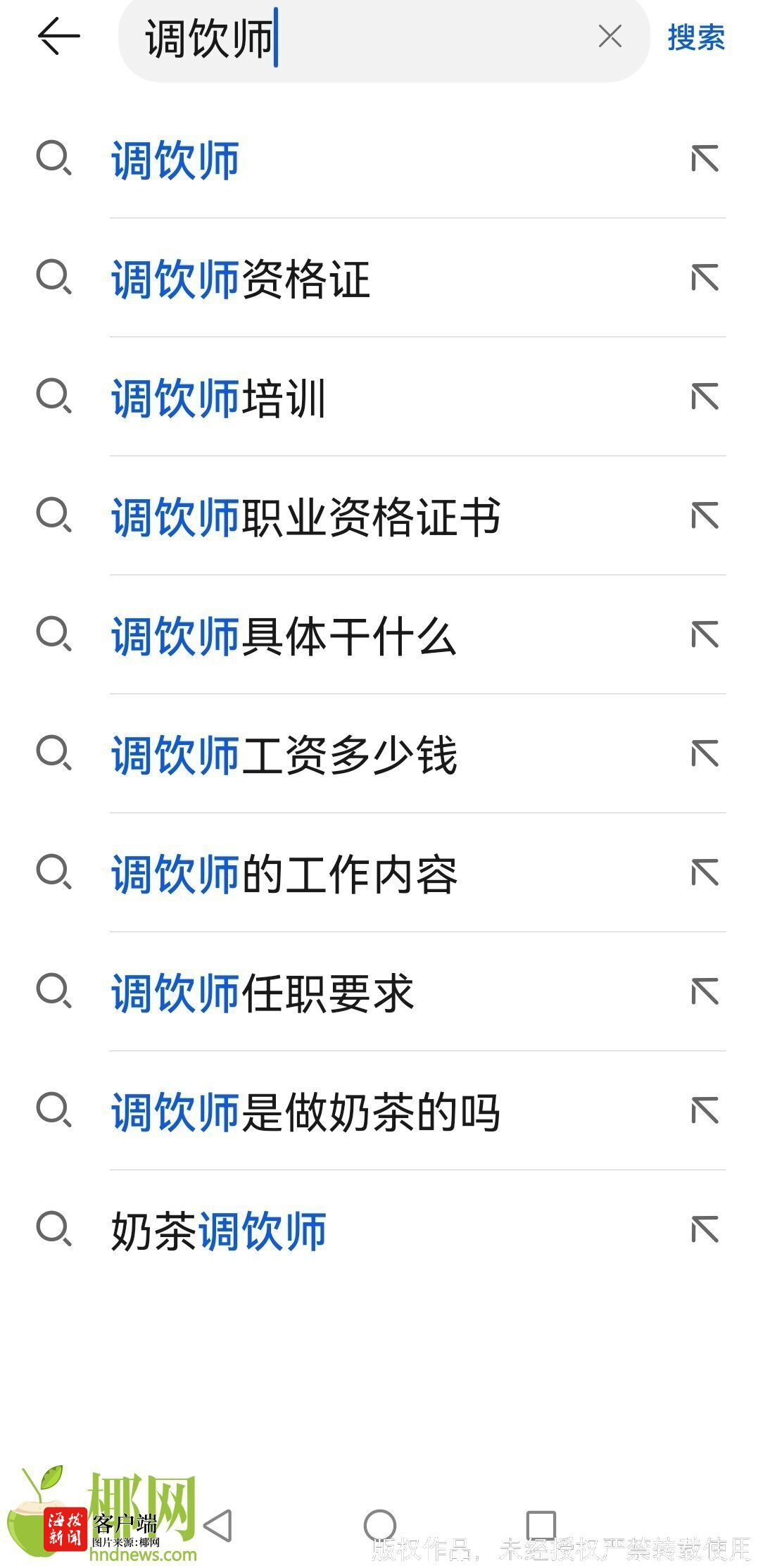 在浏览器中输入“调饮师”一词,便会自动出现调饮师资格证、调饮师工资多少钱?调饮师的工作要求等和调饮师有关的内容。记者从某招聘平台看到,海南有不少店家正在招聘调饮师。