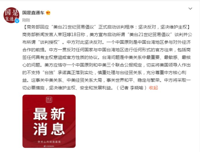 有消息称,美台将启动所谓“美台21世纪贸易倡议”谈判,最早将于今年秋天举行。8月18日,国台办、外交部、商务部相继回应。详情