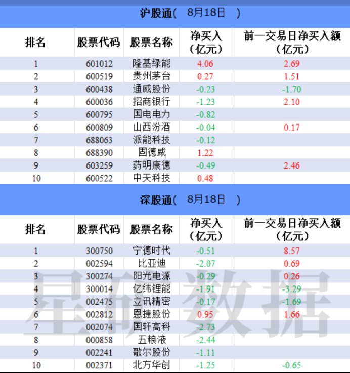 北向资金18日净卖出46.13亿元。国轩高科、五粮液、比亚迪分别获净卖出2.73亿元、2.44亿元、2.07亿元。隆基绿能净买入额居首,金额为4.06亿元。