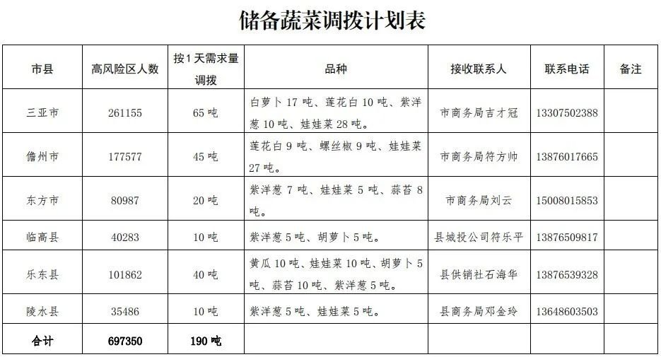 2.省商务厅决定从省应急储备蔬菜中紧急调拨190吨蔬菜支援三亚、儋州、东方、临高、乐东、陵水等6个市县。应急储备蔬菜已于22日凌晨开始装车启运。详细>>>