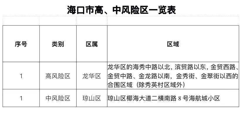 5.22日起,海口对全市风险区进行调整,调整后高风险区1个、中风险区1个。详细>>>