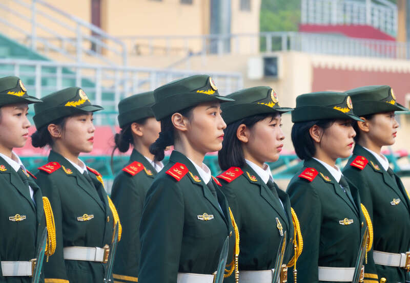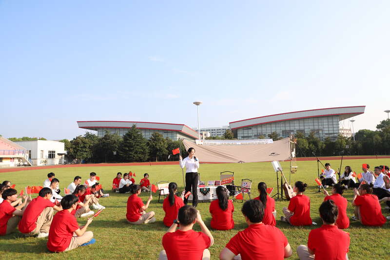 10月1日,浙江宁波财经学院的同学们在操场上,举行青春诗会,用诗句与歌声庆祝新中国73岁华诞。蔡万塔/摄