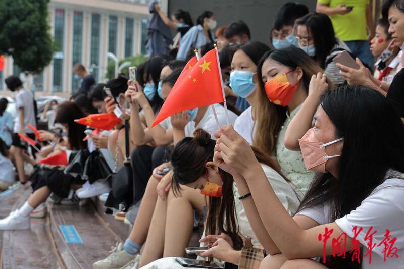 10月1日,广西南宁市街头,不少年轻人戴着印有“我爱你中国”字样的口罩。中青报·中青网记者 谢洋/摄