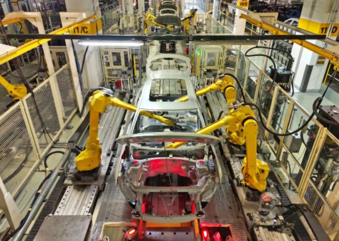 △今年11月,山东烟台,工业机器人在生产线上制造汽车。