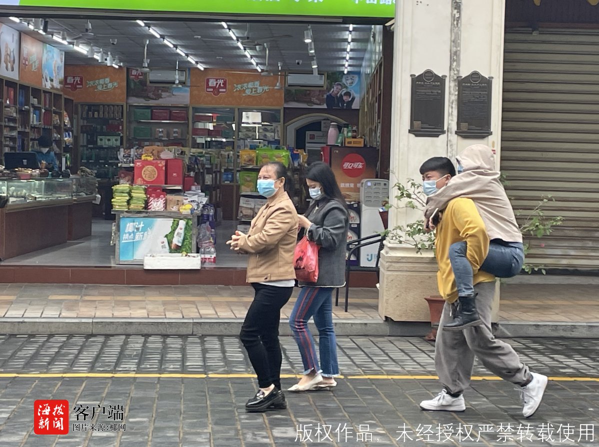 除了购买新衣和置办年货之外,也有不少游客慕名前来骑楼打卡,留影拍照。“其实我们是特意来海南过年的。”王先生在上周六带着一家五口来到了海口过年,在逛吃的过程中,还为即将到来的兔年置办了不少年货。