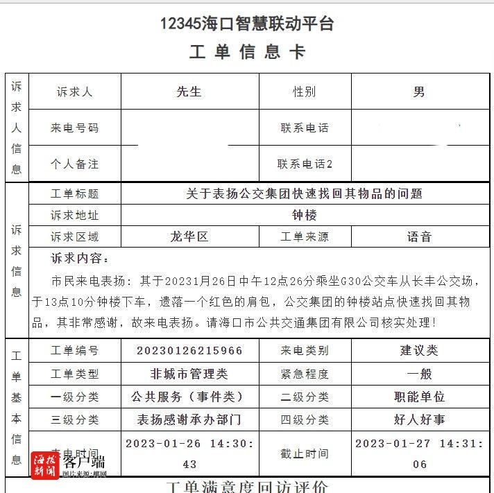 “我的背包里装着大量现金和银行卡,公交车客流量那么大,没想到这么快被找回来了。感谢你们挽回了我的经济损失,同时也为我避免了补办卡证的麻烦。”为了表达感激之情,郑先生特意致电12345热线表扬李福明和王大利。