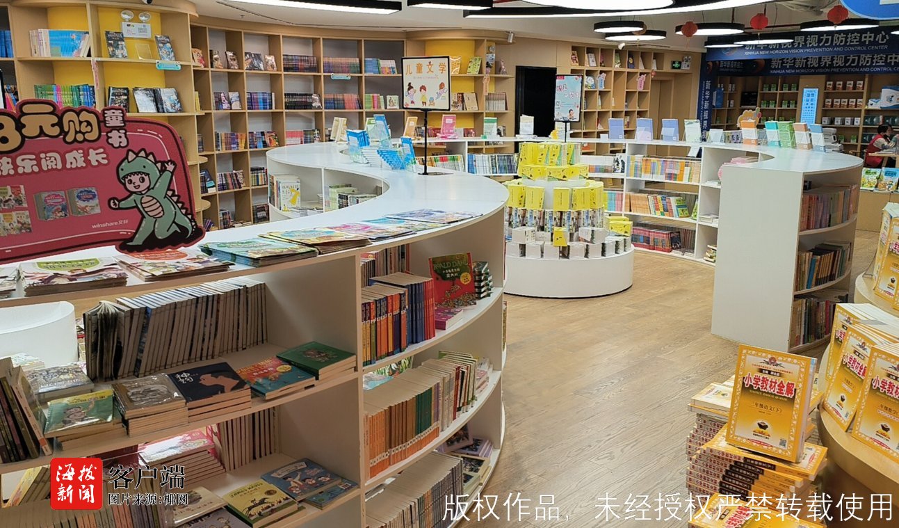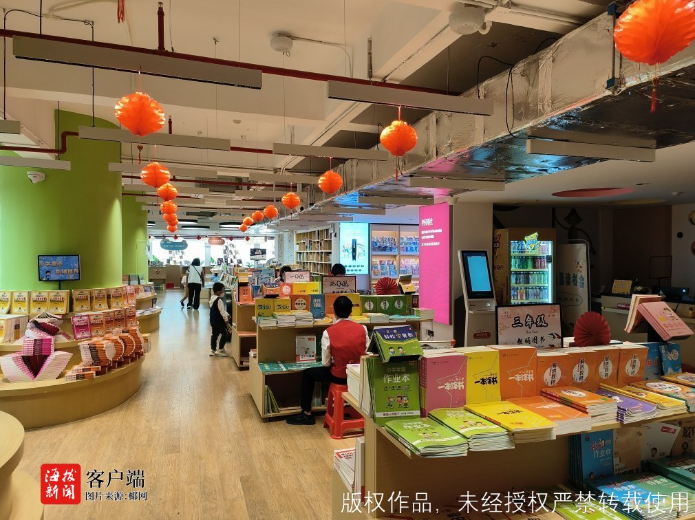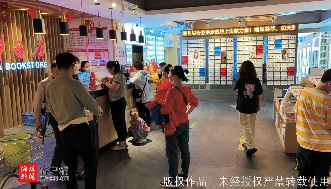 书店同样受学生家长的追捧。记者在海口市龙华区解放西路的新华书店看到,一楼聚集着一群准备买单的家长及学生,收银员应接不暇,成摞的书本摆在收银柜上,等待结账,有的家长更是抱着一大坨的教材踉跄地走出门外。