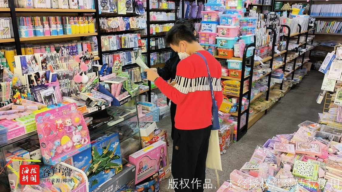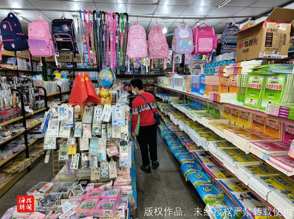 商报全媒体讯(椰网/海拔新闻记者 孙鑫 摄影报道)开学在即,国际旅游岛商报记者近日走访海口市部分书店、文具店看到,不少家长正带着孩子选购新学期的“装备”,学习用品、辅导教材等进入“热卖期”。