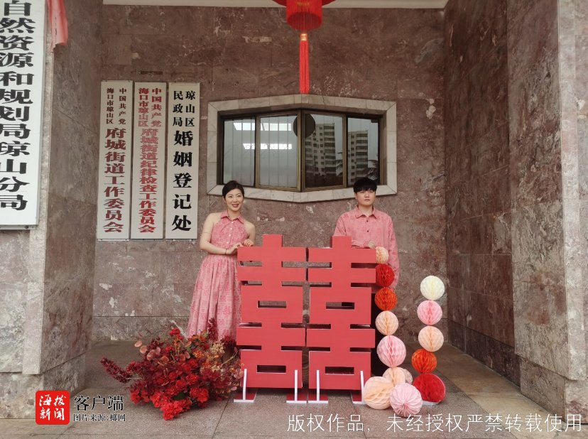 “我们结婚啦!”今日海口共有347对新人领证