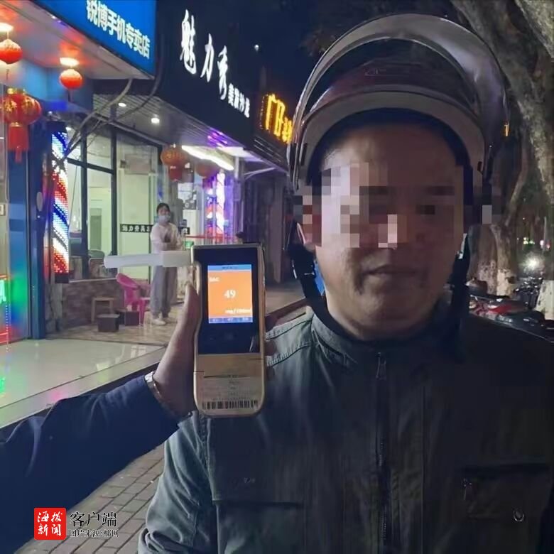 酒精检测值:49mg/100ml