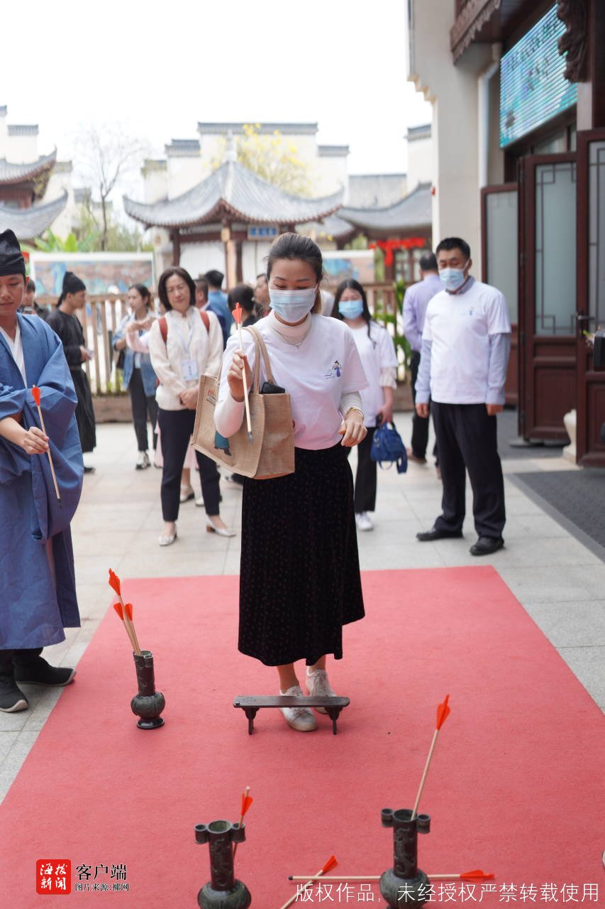深度游团员们来到苏东坡历史文化艺术馆时,前厅正举行着投壶活动,不少参团成员踊跃参与试玩,感受古人的娱乐项目。“好难,感觉需要考验眼力、手力还有心态。”团员许女士告诉记者,在古代,贵族们必备的素养便是会六艺。“一开始是出于打仗的目的,后来随着王朝统治的相对稳定,大批人靠着祖上的荫庇,衣来伸手饭来张口,终生跟沙场无缘,为了不让他们忘记本领,六艺在礼仪上被保留了下来,投壶游戏便是出自于其中的‘射’,就是射箭,它们有着共同的特性,那就是对精准度要求高。”