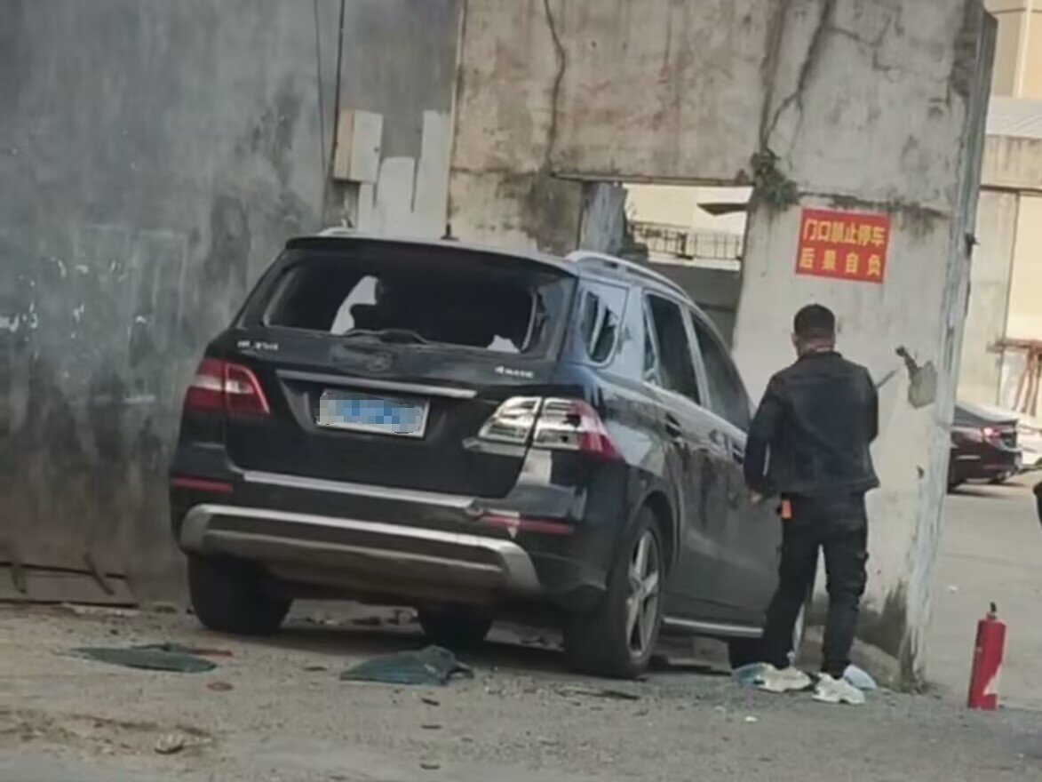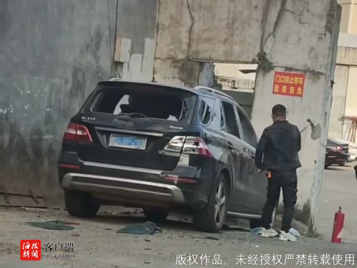 2月23日下午,记者来到事发村,经了解后得知,事发时间为2月22日17时许,地点位于海口某村内一仓库门口,被砸奔驰越野车车主是一家门业公司负责人。