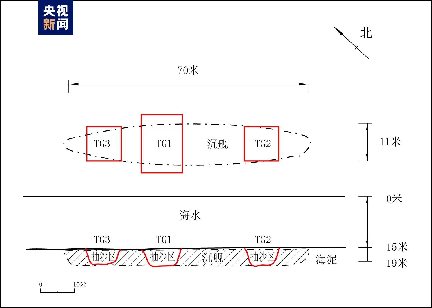 △“靖远”舰遗址发掘位置示意图