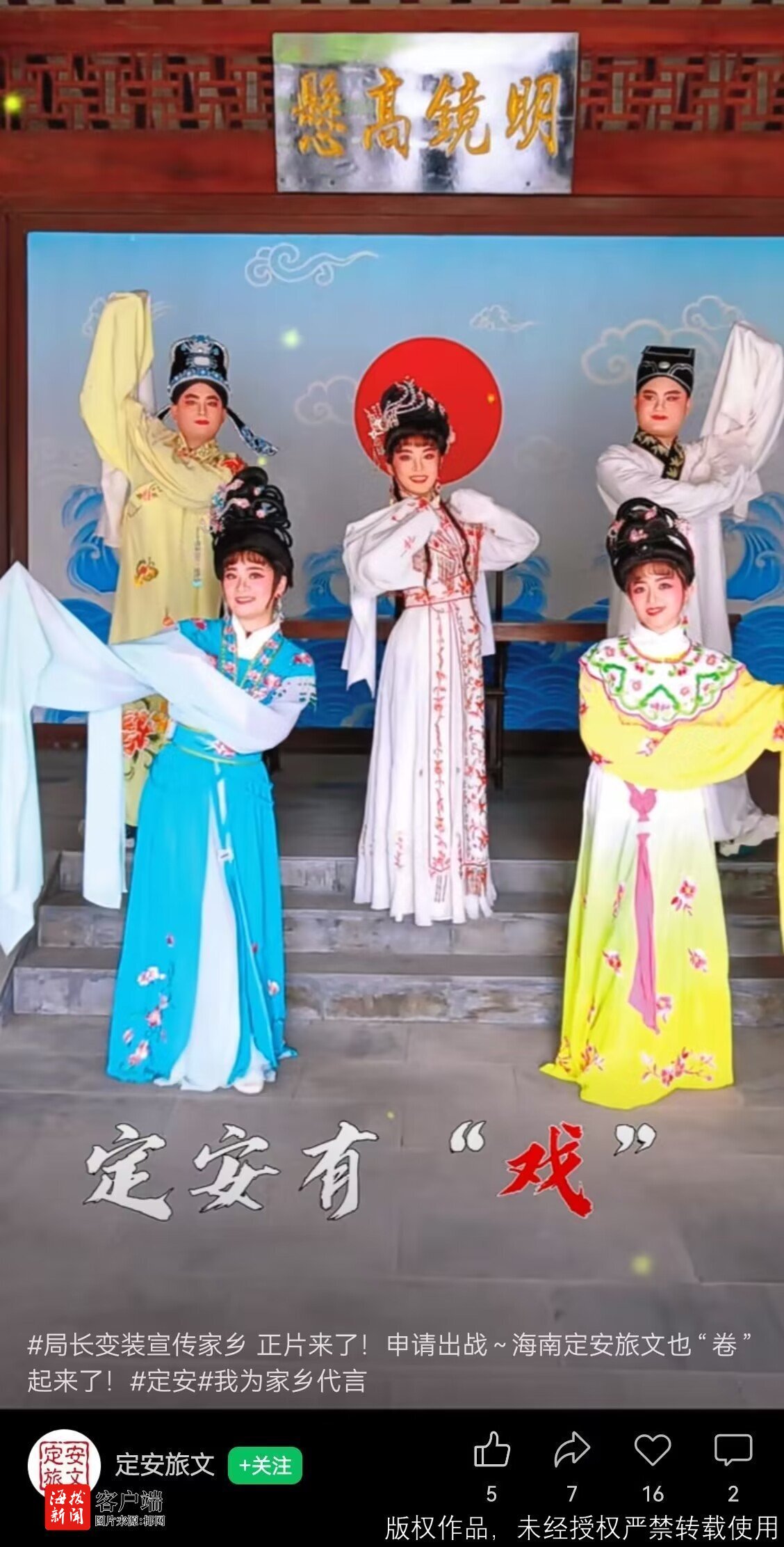 商报全媒体讯(椰网/海拔新闻记者 张艺 摄影报道)保亭黎族苗族自治县副县长吕妍带你赏保亭生态之美、品黎苗人文风情,屯昌县副县长吴多毅化身“侠客”形象、定安县旅文局副局长黄慧带你琼剧变转、让古老琼剧艺术焕发青春,用别样新颖的方式宣传家乡旅游资源……海南各地相关部门为了推介家乡旅游资源真的很“拼”,纷纷化身为“旅游推荐官”,为地域旅游产品代言。