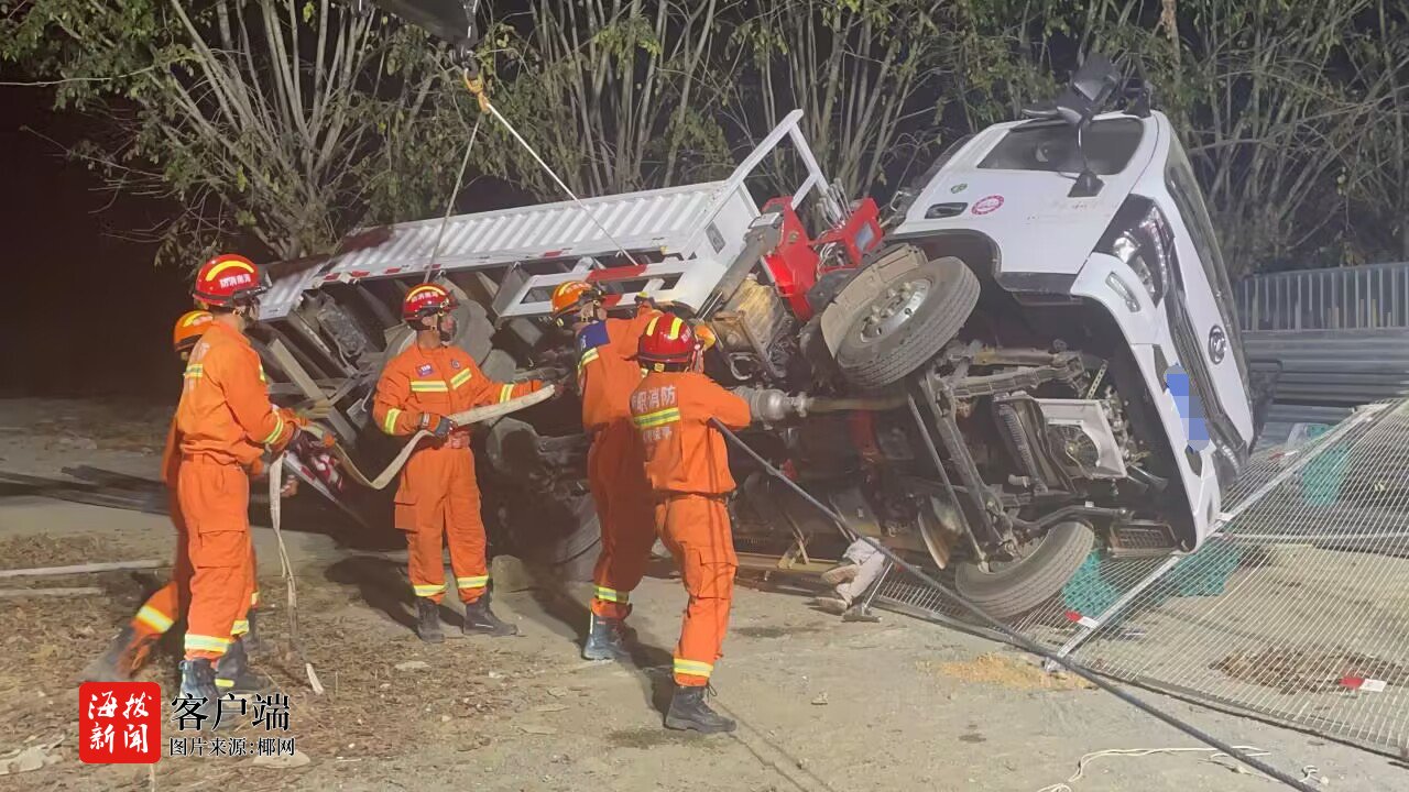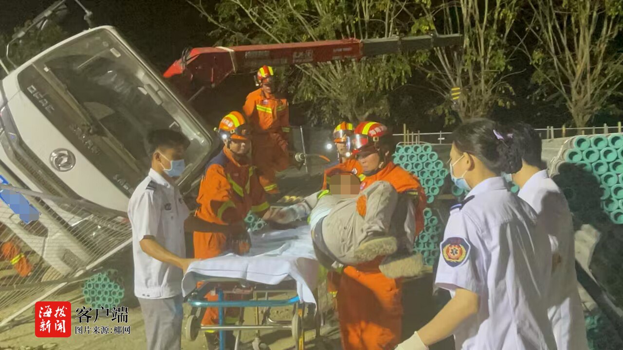 事发保亭!一辆货车侧翻压住男子双腿,消防紧急救援……