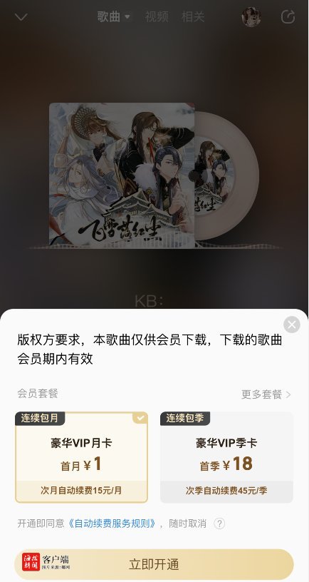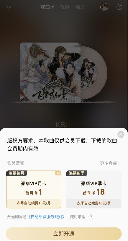 三大音乐平台皆存在需要会员才得以下载音乐的现象