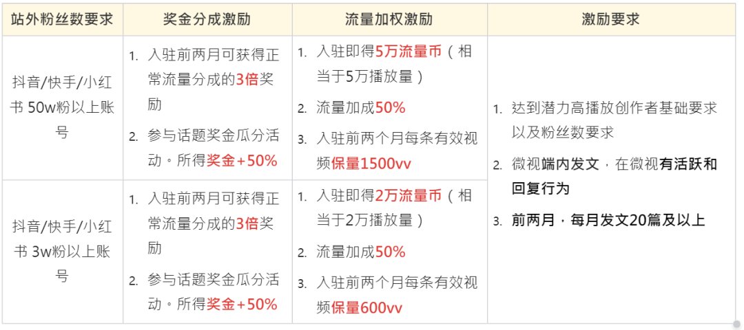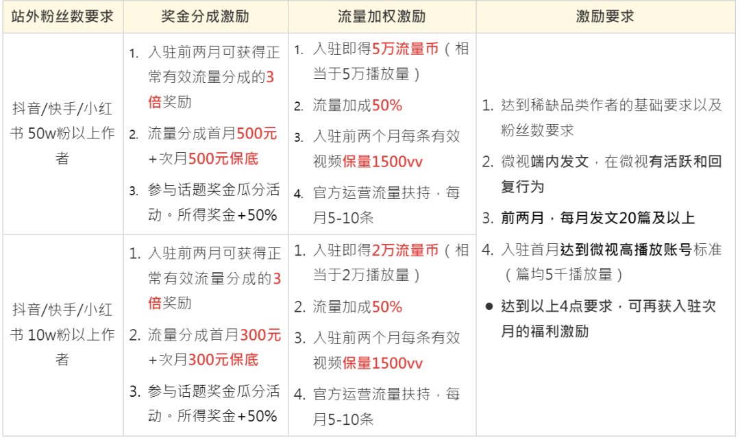 实际上,除了招募来自抖音、快手、小红书的个人创作者,腾讯微视在今年2月也曾向抖音、快手等优秀机构作者伸出橄榄枝,粉丝要求是3w+和50W+,也给予丰厚的发文奖励和可观的流量分成。