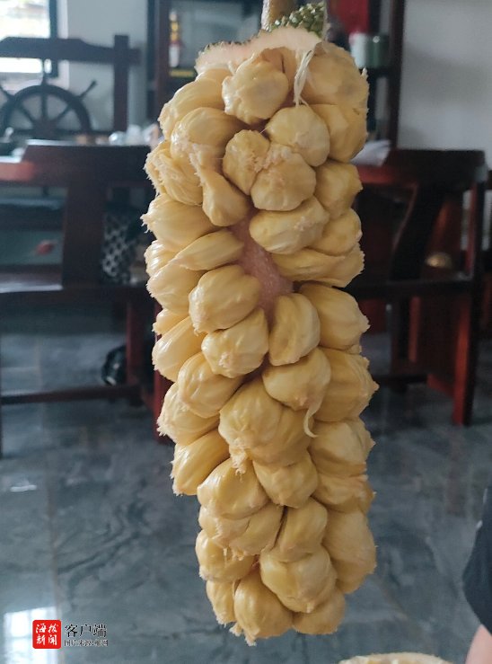商报全媒体讯(椰网/海拔新闻记者 黄力萍 实习记者 熊文颖 摄影报道)近年来,三亚引种世界同纬度地区水果品种,充分利用南繁成果,逐步打造出系列“新奇特优”果品,榴莲蜜正是其中之一。据三亚市育才生态区马脚村榴莲蜜试种示范基地(以下简称“育才榴莲蜜基地”)管理负责人曾祖谢介绍,2008年引进十几个不同品种的榴莲蜜,经过十五年不断的改良培育筛选,目前最优品种奶白榴莲蜜最适合在海南种植,口感也最接近榴莲。接下来将逐步延长加深奶白榴莲蜜种产销一体化产业链,在周边地区推广“庭院经济”,让奶白榴莲蜜成为带动农民增收致富的重要一环。