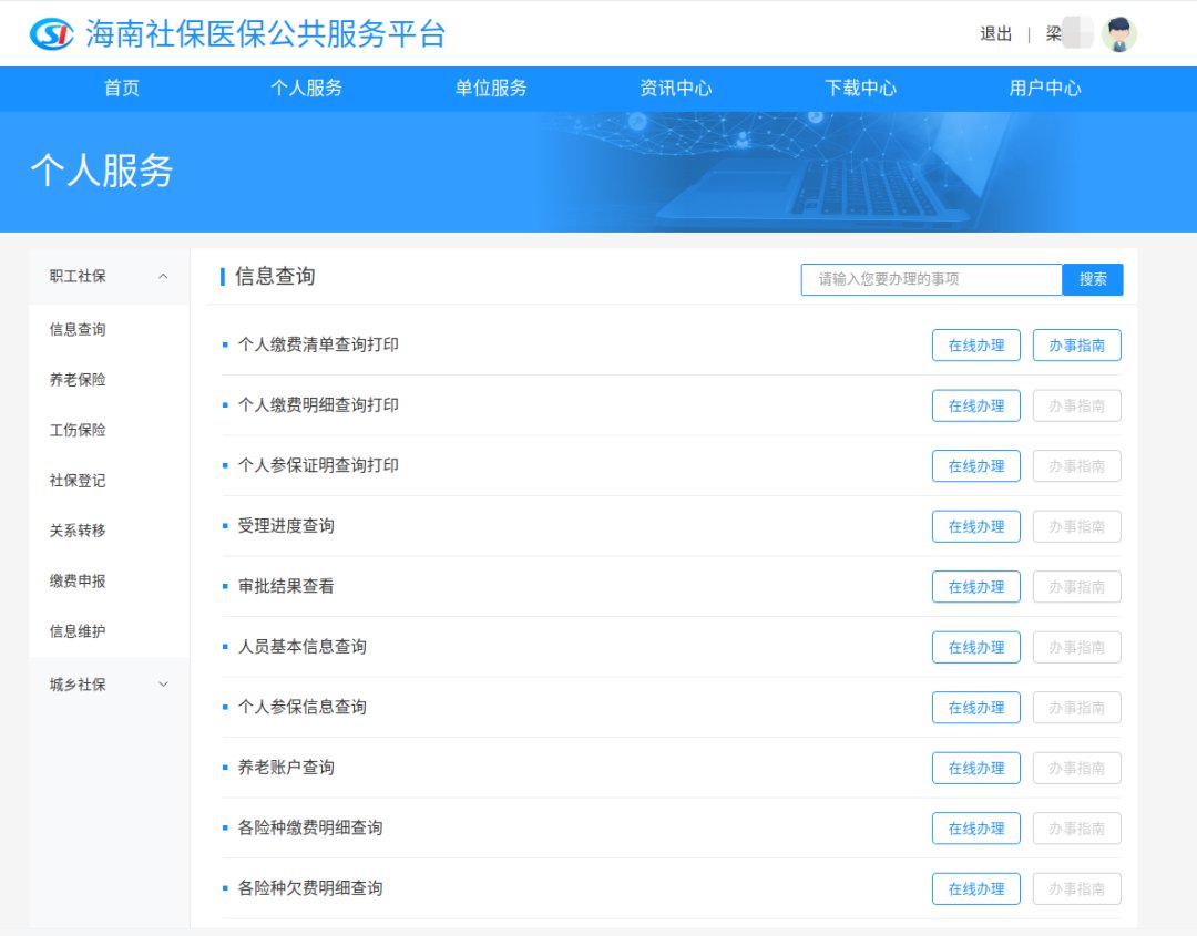 海南社保医保公共服务平台