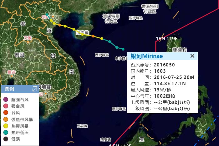 台风“银河”是2016年7月25日17时由南海中部形成的热带低压发展而来,26日22时20分在我省万宁市东澳镇登陆,登陆时中心附近最大风力10级(28米/秒),中心附近最低气压985百帕。28日凌晨它在越南南定省再次登陆。受“银河”影响,7月25日17时~28日06时,海南岛南半部地区普降暴雨到大暴雨、局地特大暴雨,北半部地区普降中到大雨、局地暴雨。海南岛东部近海岛屿测得最大阵风13级(万宁白鞍岛37.2米/秒);登陆点万宁沿海陆地测得最大阵风11级(万城镇31.5米/秒),平均风10级(万城镇27.4米/秒)。