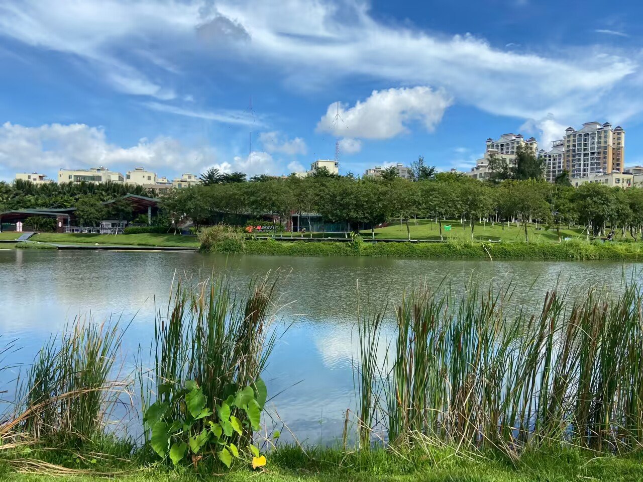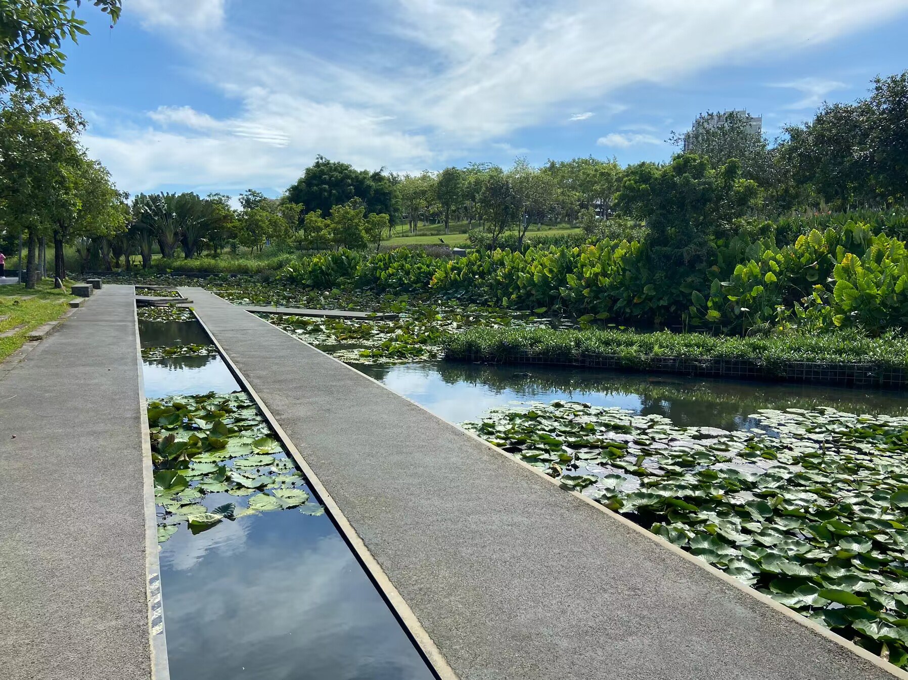 2015年开始,海口市痛下决心整治美舍河,除了严格管理排污,还做了很多生态修复工作,引种了水生植物,提高河流的自净能力。而今美舍河已经消除了黑臭,水质达到五类水标准,沿岸的湿地在2019年通过国家林草局验收,正式成为国家湿地公园。凤翔湿地公园,就是美舍河国家湿地公园其中的一段。