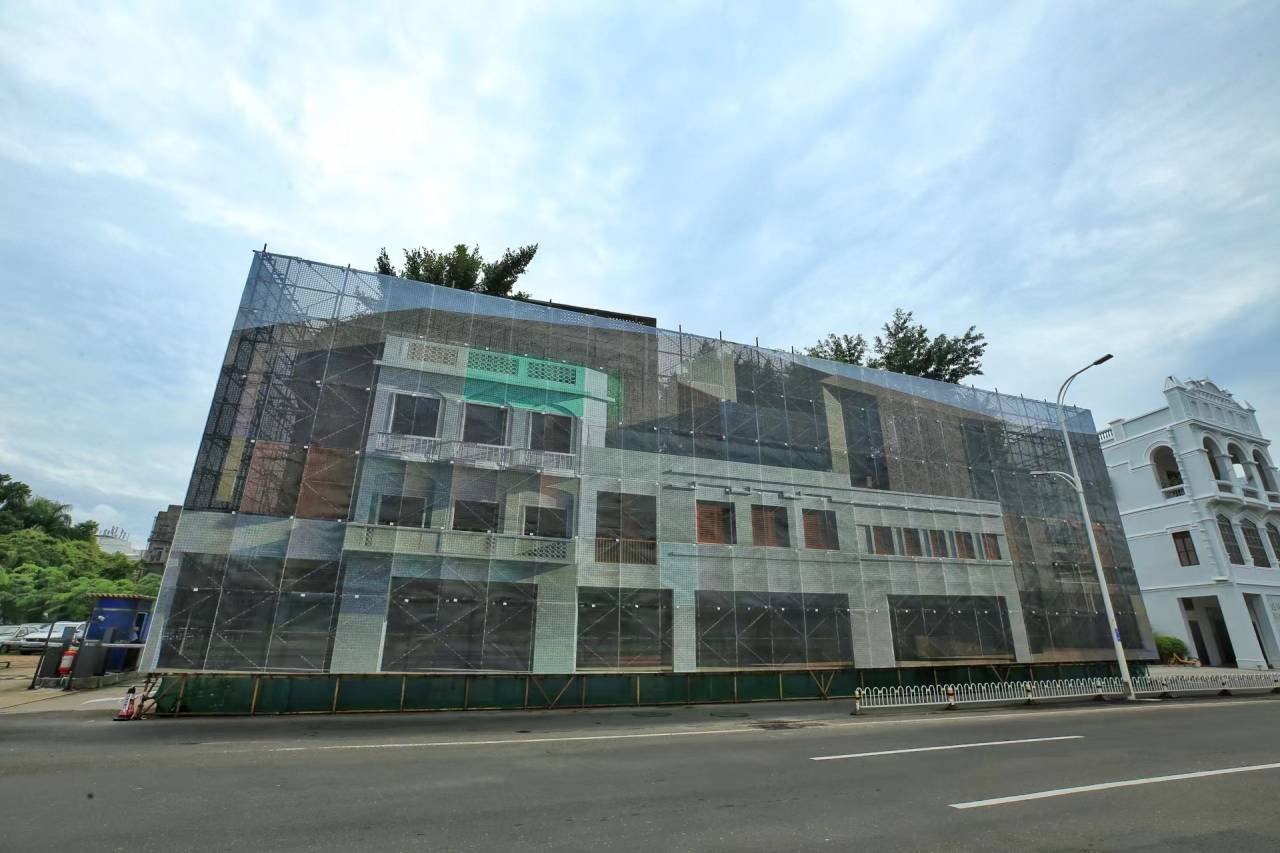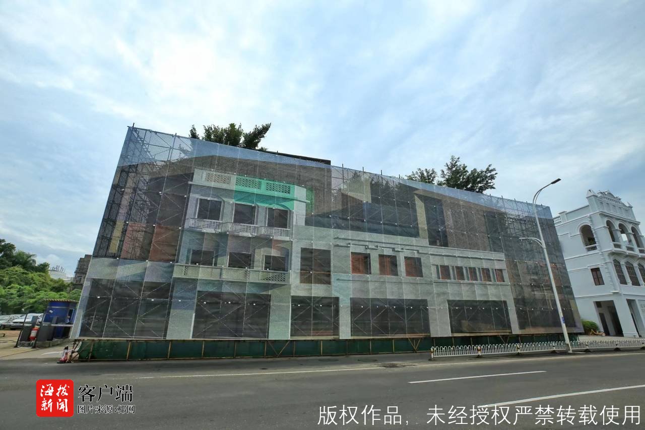 此外,沿着骑楼老街的大街一路前行,我们还看到一栋充满历史韵味风格的建筑正在建设中,外观色调以传统建筑中的白色为主,披着神秘“纱衣”,成为这条路上最独一无二的风景线,它就是海南省华侨博物馆。