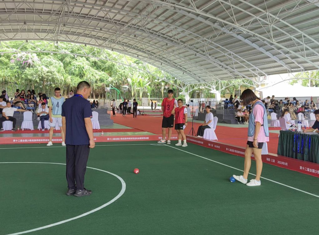 第十二届全国民族运动会蹴球测试赛共有北京市、辽宁省、安徽省、福建省、江西省、河南省、湖南省、广西壮族自治区、海南省和贵州省等十个省市区10支代表队报名参赛,分为男子单蹴、男子双蹴、女子单蹴、女子双蹴、男女混合双蹴等项目。在蹴球比赛中,运动员不仅需要控制击球的方向、力量和节奏,还要布局球摆设的位置,谋划击球的顺序等,“这是一场体力和脑力的双重比拼,同时这项运动也是老少皆宜的。”蹴球测试赛裁判长吕健力说。