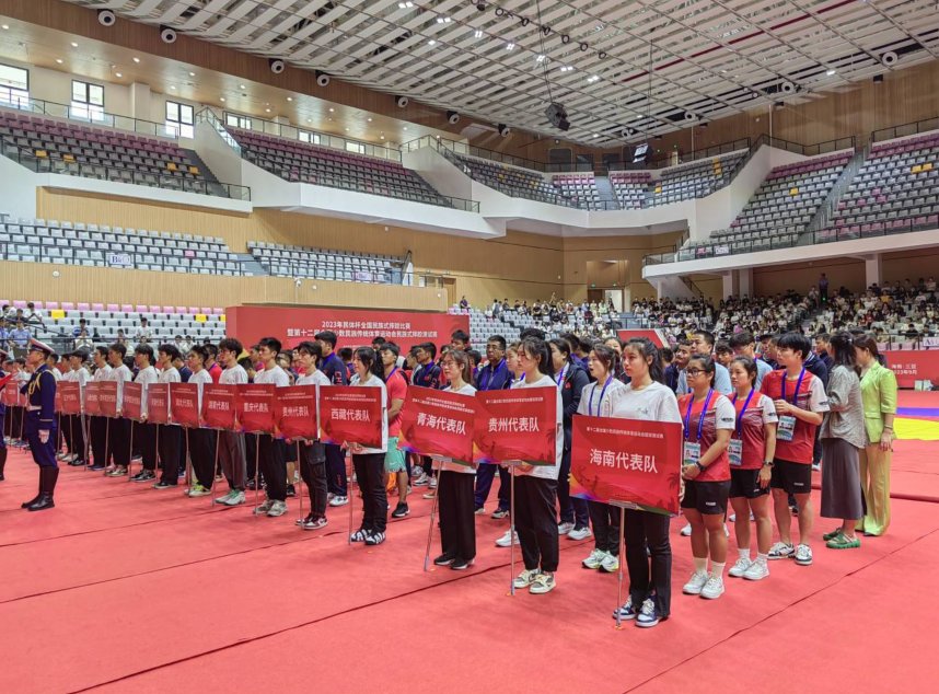 据了解,2023年民体杯全国民族式摔跤比赛共有山西省、辽宁省、河南省、湖北省、湖南省、重庆市、贵州省、西藏自治区、青海省等9个省市区代表队报名参赛。