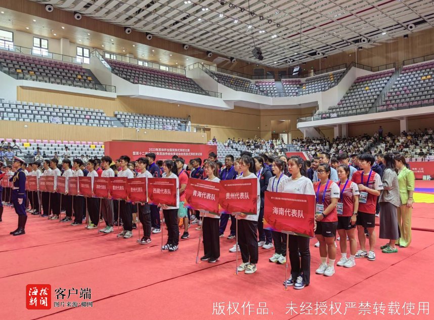 商报全媒体讯(椰网/海拔新闻记者 熊文颖 黄力萍 摄影报道)9月15日,为期两天的2023年民体杯全国民族式摔跤比赛、第十二届全国民族运动会蹴球测试赛在三亚开幕,来自全国各省市区19支代表队齐聚三亚,共叙民族团结深厚情谊,共享民族体育运动独特魅力。
