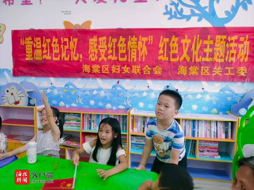 商报全媒体讯(椰网/海拔新闻实习记者 蔡欣月)为庆祝祖国74周年华诞,弘扬爱国主义精神,厚植儿童爱国情怀,赓续红色血脉。10月4日至5日,三亚海棠区妇联联合区关工委在龙海村、海丰村、江林村、庄大村妇女儿童之家开展“重温红色记忆,感受红色情怀”红色文化主题活动。