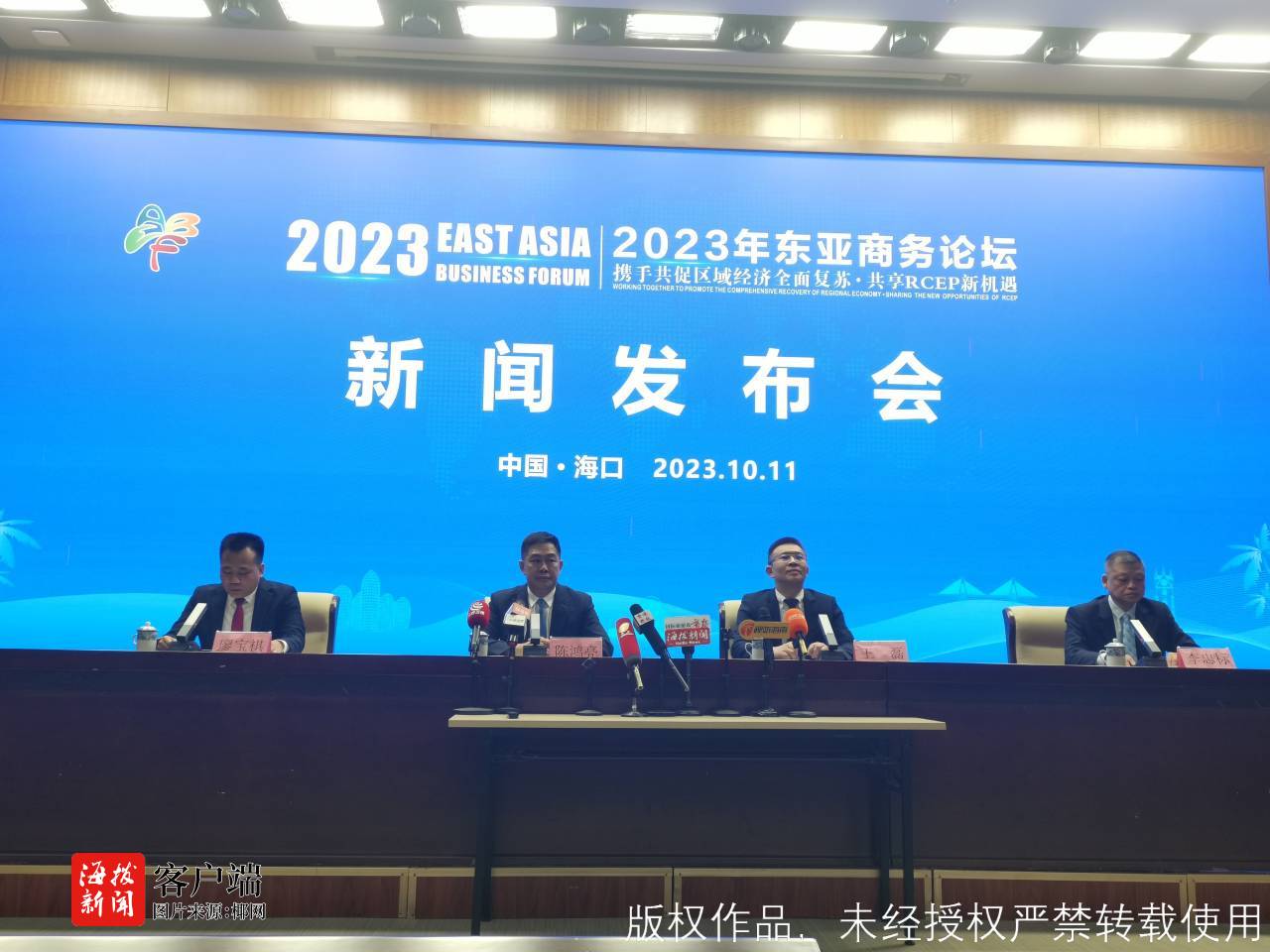 商报全媒体讯(椰网/海拔新闻记者 柯育超 陈王凤 摄影报道)10月11日,2023年东亚商务论坛新闻发布会在海口召开,中国国际贸易促进委员会海南省委员会二级巡视员陈鸿亮在会上介绍,2023年东亚商务论坛将于2023年10月18日-20日在海南省海口市举行。
