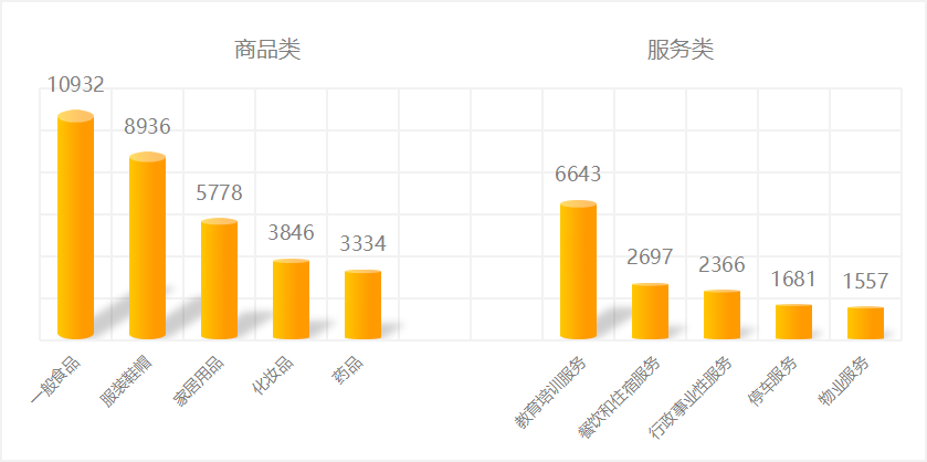 较为关注的投诉类型为服装鞋帽类、餐饮和住宿服务类等