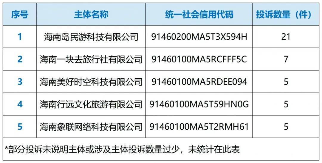 华莱士、海南岛民游科技有限公司等20家被投诉较多,事关餐饮和住宿