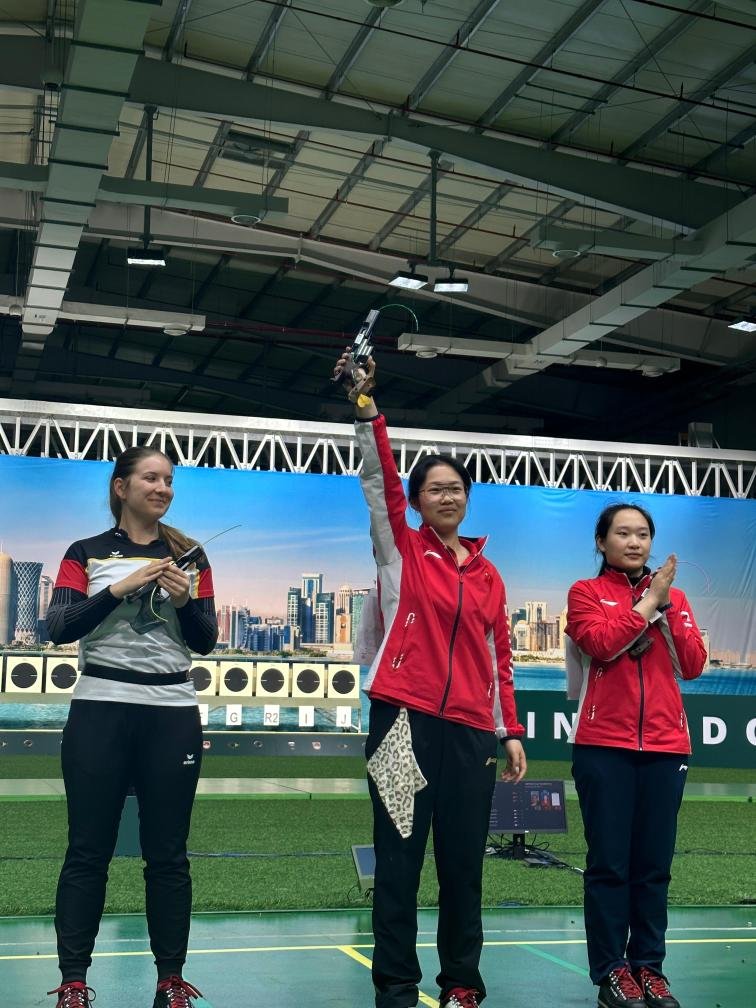 冯思璇今年才开始进入国际射联成年组比赛,在参加的两站世界杯上都拿下冠军。