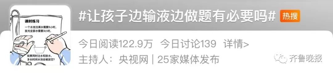 “如果孩子还能精神抖擞地写作业,其实就不必一定输液;如果孩子已经需要输液治疗,就应该让孩子好好休息。让孩子一边输液一边写作业,就像我们发着高烧还得做PPT一样。”