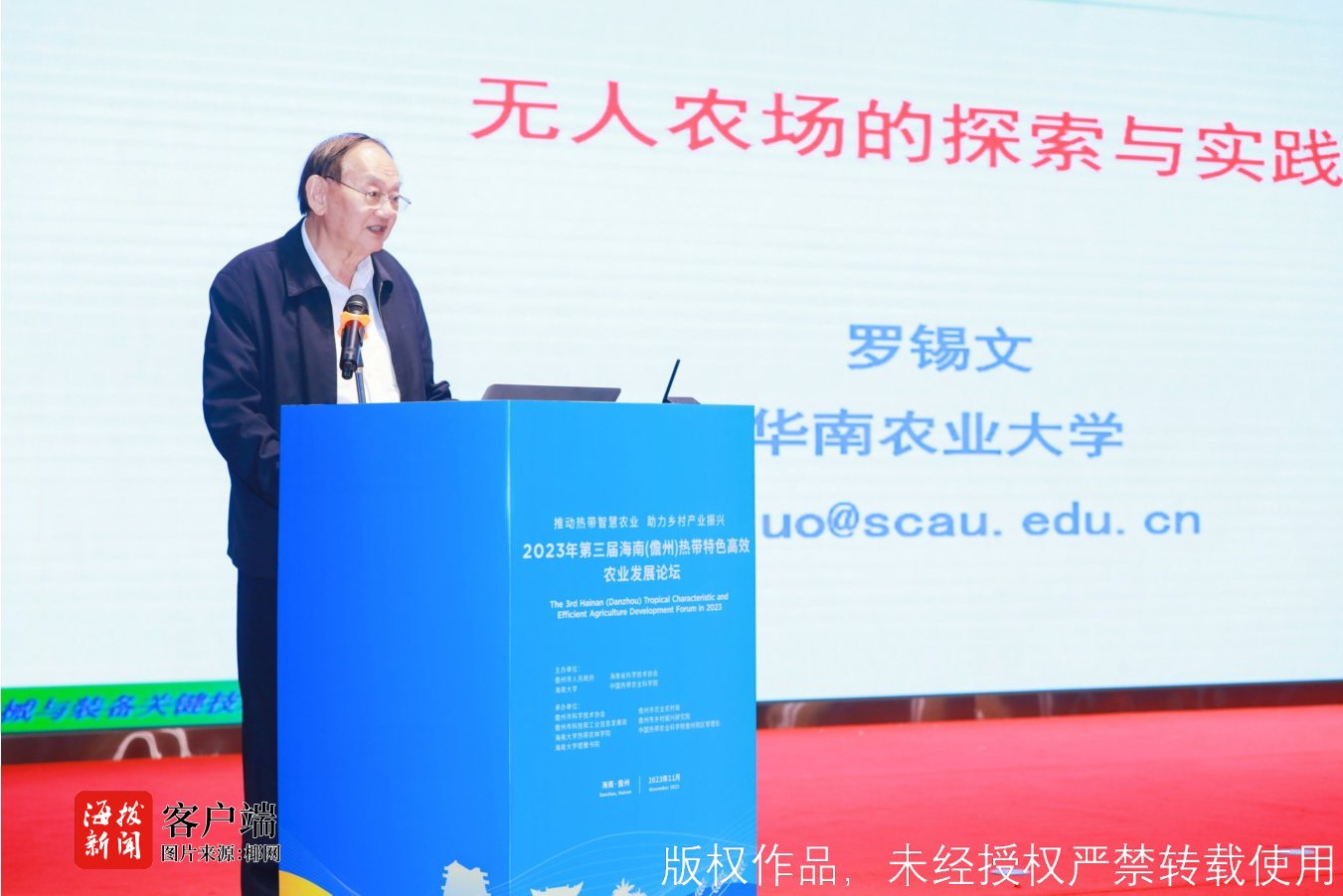 本次论坛以“推动热带智慧农业、助力乡村产业振兴”为主题。开幕式上,中国工程院院士罗锡文分享了无人农场的探索与实践,中国工程院院士赵春江则展望了智慧农业的前景。当天,青岛农业大学、海南大学、中国热带农业科学院等高校专家学者通过主题报告、专题报告、科技成果推介等多种形式,针对热带特色高效农业发展进行交流。