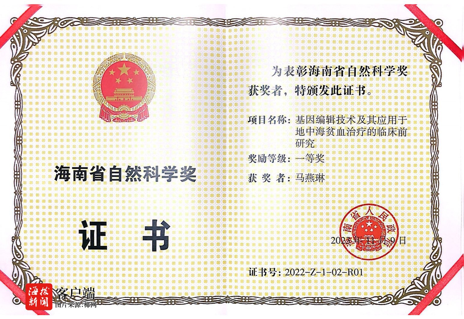 海南医学院第一附属医院生殖医学科主任马燕琳教授团队的研究项目“基因编辑技术及其应用于地中海贫血治疗的临床前研究”荣获海南省自然科学奖一等奖。团队成员包括马燕琳、李大力、李崎、王立人、揭秋玲、龙平、LIU MINGYAO、叶彩霞。