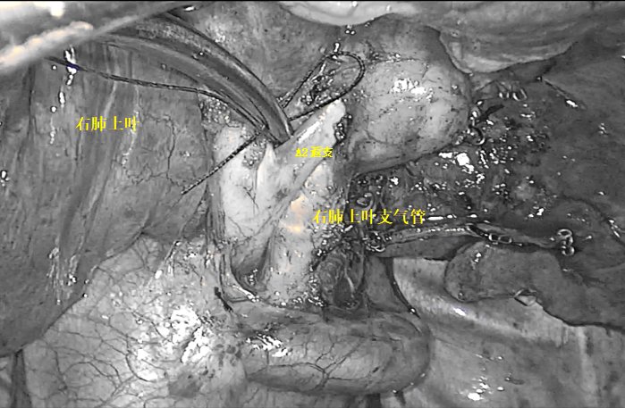 术前,赵主任团队分析肺段动脉、静脉及支气管,并准确定位结节位置,精准分析切除范围,制定肺段切除计划。术中,由于李女士叶间裂发育不全,给后段切除手术造成了一定阻碍,但赵宏光主任凭借着坚实的解剖知识及高超的手术技巧和丰富的手术经验,清晰地将各个结构分离并离断各支肺段动脉、静脉及支气管,精准地切除右上肺后段。