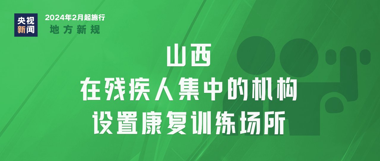 《山西省实施〈残疾预防和残疾人康复条例〉办法》自2月1日起施行。办法明确,在特殊教育学校、社会福利机构、养老服务机构以及其他残疾人集中的机构设置康复训练场所,为残疾人提供康复服务。