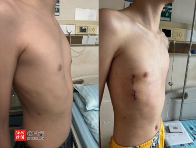 商报全媒体讯(椰网/海拔新闻记者 孙鑫 通讯员 刘清峰 吴毓优)进入寒假以来,海南医学院第一附属医院(以下简称:海医一附院)胸外科收治了十多名10-19岁的“漏斗胸”患者,譬如患者磊磊就是其中一名,磊磊因前胸壁凹陷曾就诊于外院门诊,当时磊磊的胸壁凹陷程度较轻,医生建议家长行保守吸盘治疗,但家长出于种种顾虑并没有治疗。没过多久,磊磊前胸壁凹陷越来越深,着急的家长多方打听,了解到海医一附院是全省唯一一家中国胸壁外科联盟海南地区联盟,于是一放寒假便前往就诊。