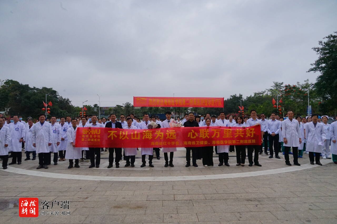 商报全媒体讯(椰网/海拔新闻记者 孙鑫)2月26日中午,海南医学院第二附属医院(以下简称“海医二院”)为第六批援布基纳法索医疗队队员陈道虎、邱坚两位医生举行隆重的欢送仪式,省红十字会、省卫健委、海医二院教职员工等300余人出席欢送仪式。