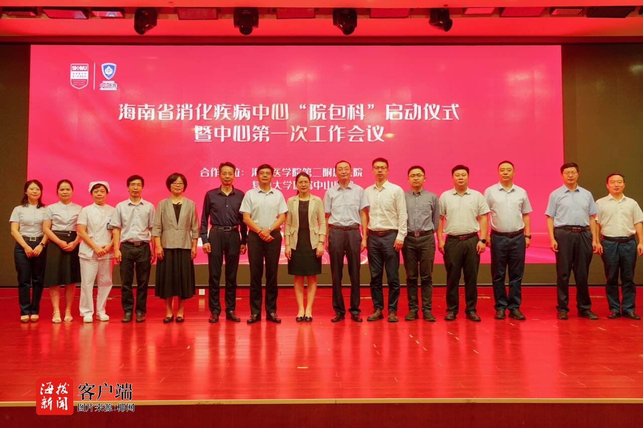 商报全媒体讯(椰网/海拔新闻记者 孙鑫)5月17日上午,海南省消化疾病中心“院包科”启动仪式暨中心第一次工作会议在海南医学院第二附属医院(以下简称“海医二院”)举行。海南省卫生健康委党组成员、副主任李钟军,医政处副处长康璇、复旦大学附属中山医院副院长钱菊英,复旦大学附属中山医院消化科主任、海南省消化疾病中心主任沈锡中教授,复旦大学附属中山医院肝肿瘤外科朱凯教授,海医二院党委书记王毅等出席启动仪式。