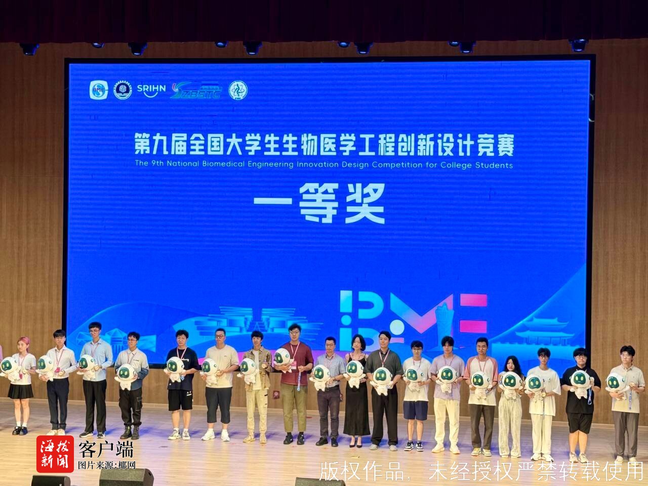 商报全媒体讯(椰网/海拔新闻记者 洪羽宸 摄影报道)7月26日,由中国生物医学工程学会主办的第九届全国大学生生物医学工程创新设计竞赛在三亚市崖州湾科技城落下帷幕,经过5天的激烈角逐,共有1184项作品入围决赛,其中,共产生一等奖125项、二等奖402项、三等奖653项、优秀组织奖45项。