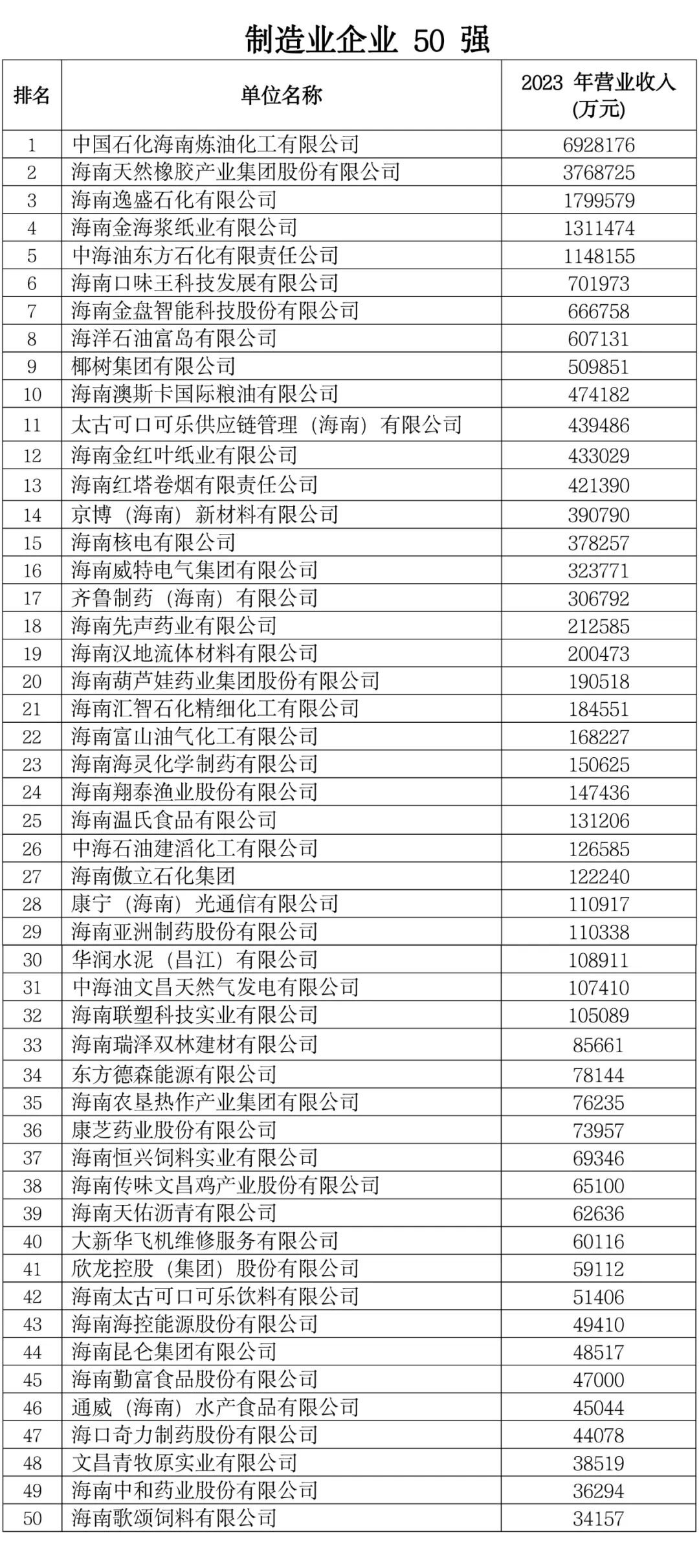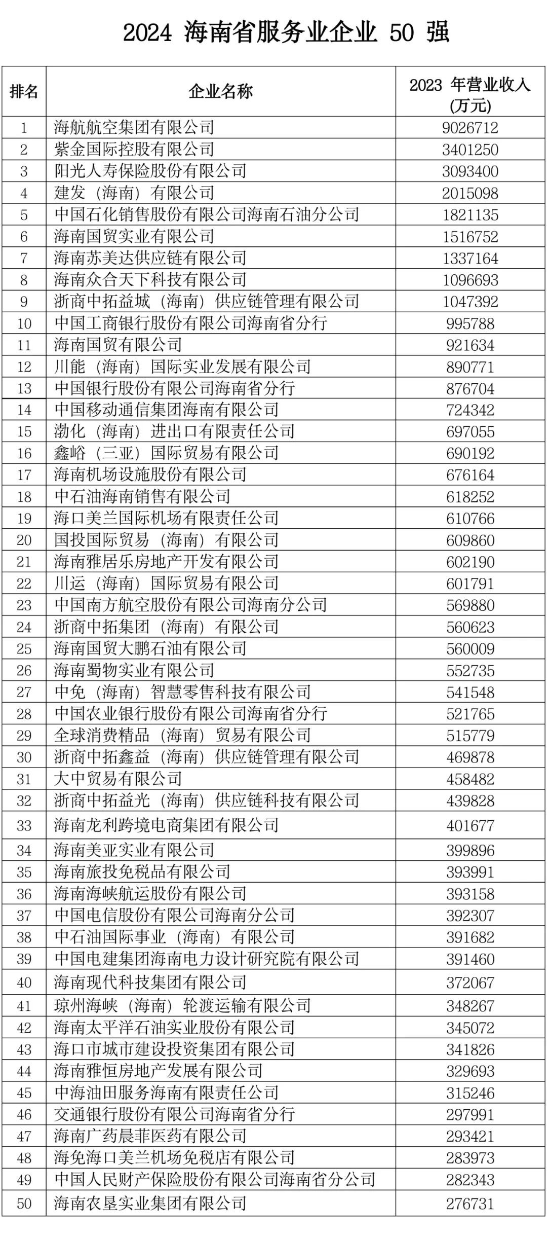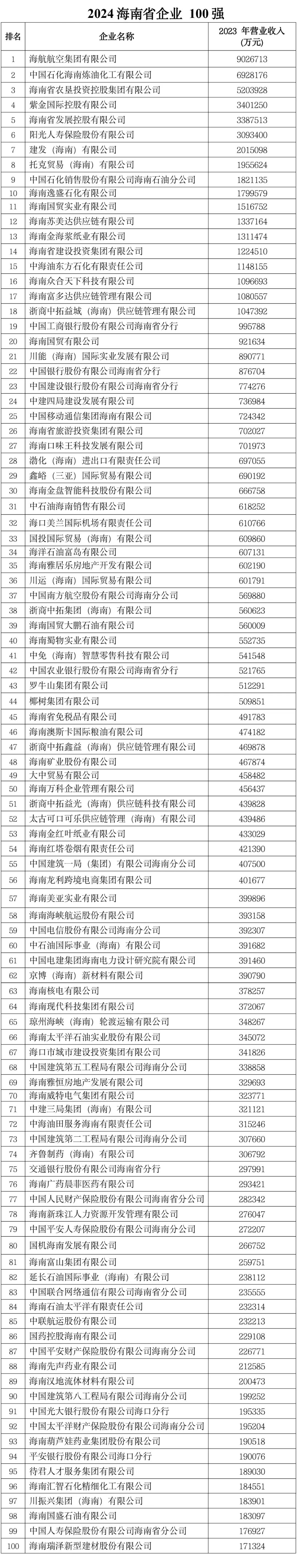 (原标题:2024海南省企业100强出炉!第一名是→)