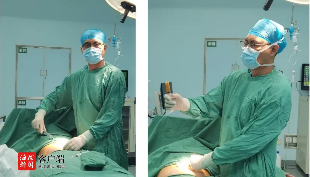面对慕名而来跨国求医的李女士,海医一附院贾主任团队非常重视。经团队对李女士病情进行仔细了解、认真查体后,诊断为右膝骨关节炎、右膝半月板损伤,适合进行SVF治疗。李女士随即入院,由于嘉安医师安排相关检查,并顺利完成了局麻下的腹部微创抽脂,且于住院第三天傍晚进行右膝SVF注射治疗后便顺利出院。