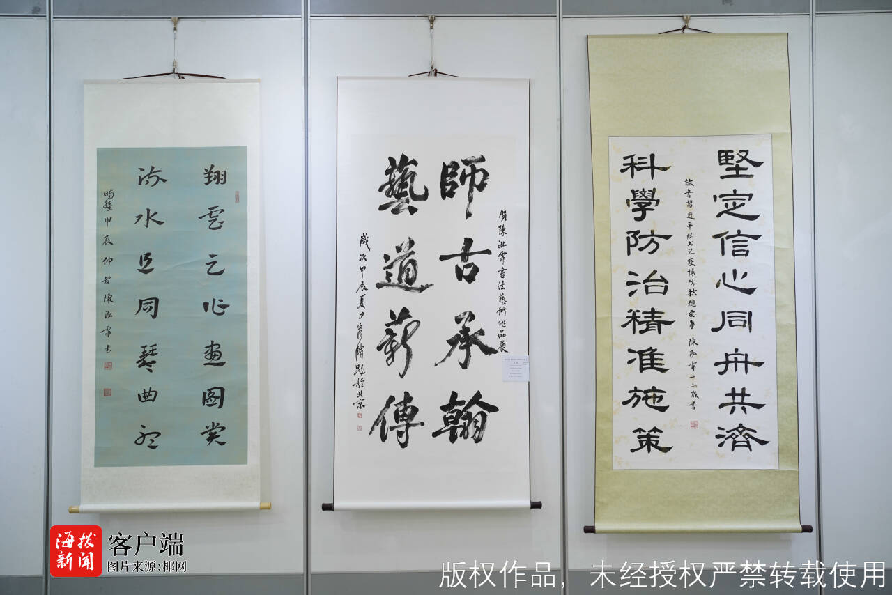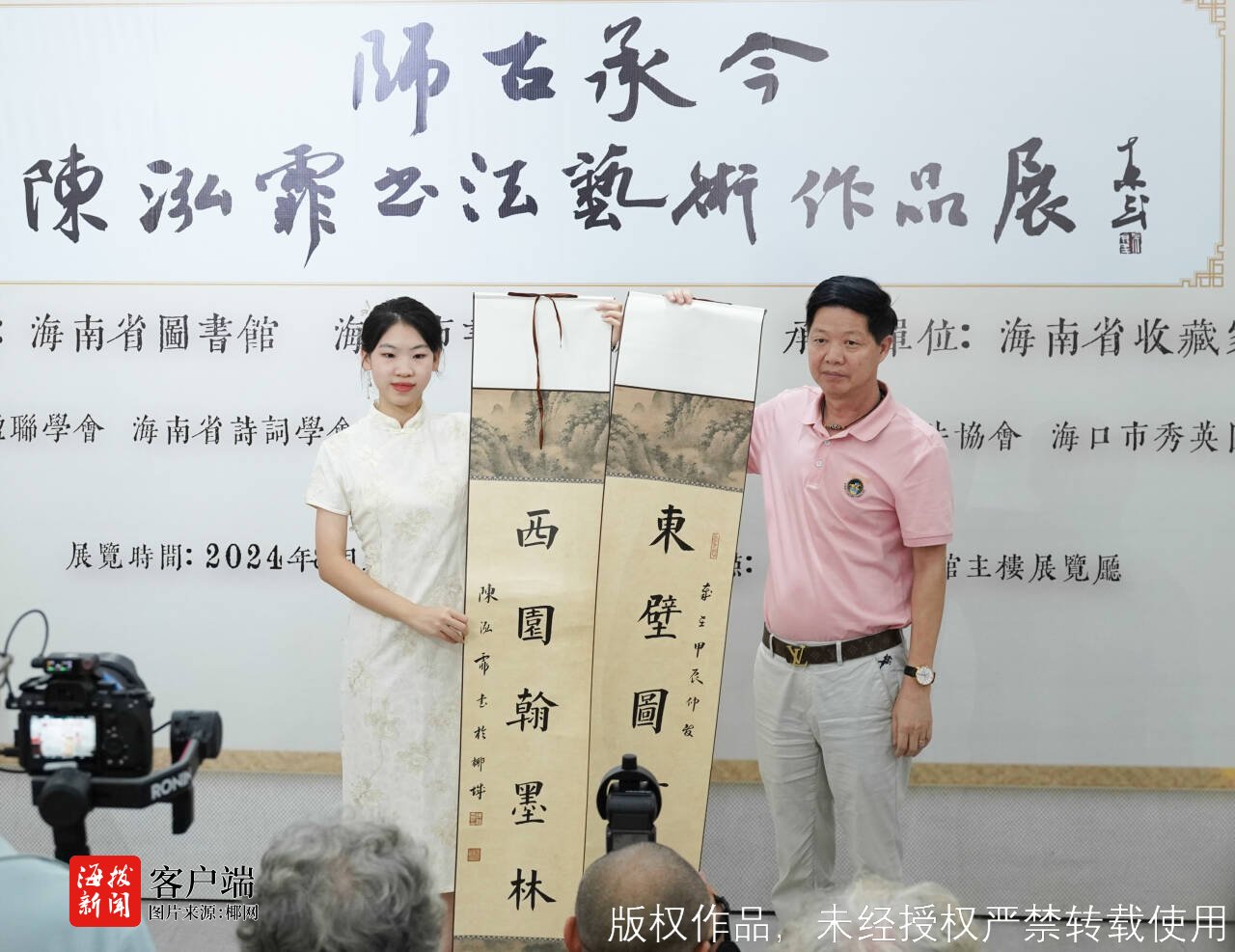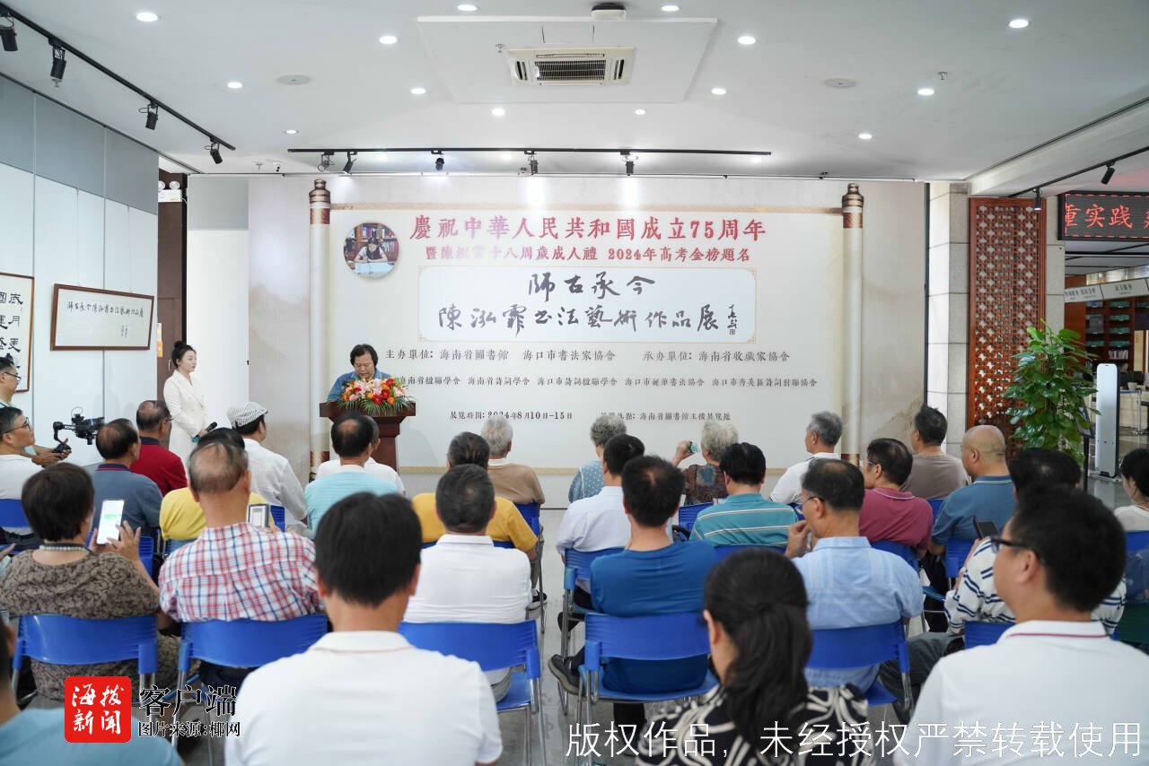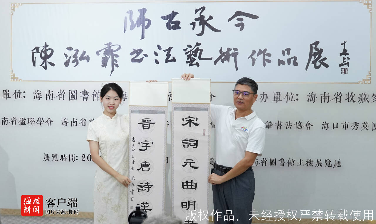 据悉,《师古承今——陈泓霏书法艺术作品展》由海南省图书馆、海口市书法家协会联合主办,海南省收藏家协会承办,海南省楹联学会、海南省诗词学会、海口市诗词楹联学会、海口市硬笔书法协会、海口市秀英区诗词对联协会共同协办。此次展览将展至8月15日。